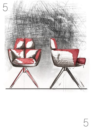 Our process was treating inspiration, design, function, and production as an integrated challenge. Following the initial sketches, we leveraged advanced surfacing and CAD modeling to perfect the chair’s enveloping, organic shell, ensuring both a distinctive aesthetic and superior ergonomic comfort. Beyond form, we defined the entire production pathway, including: